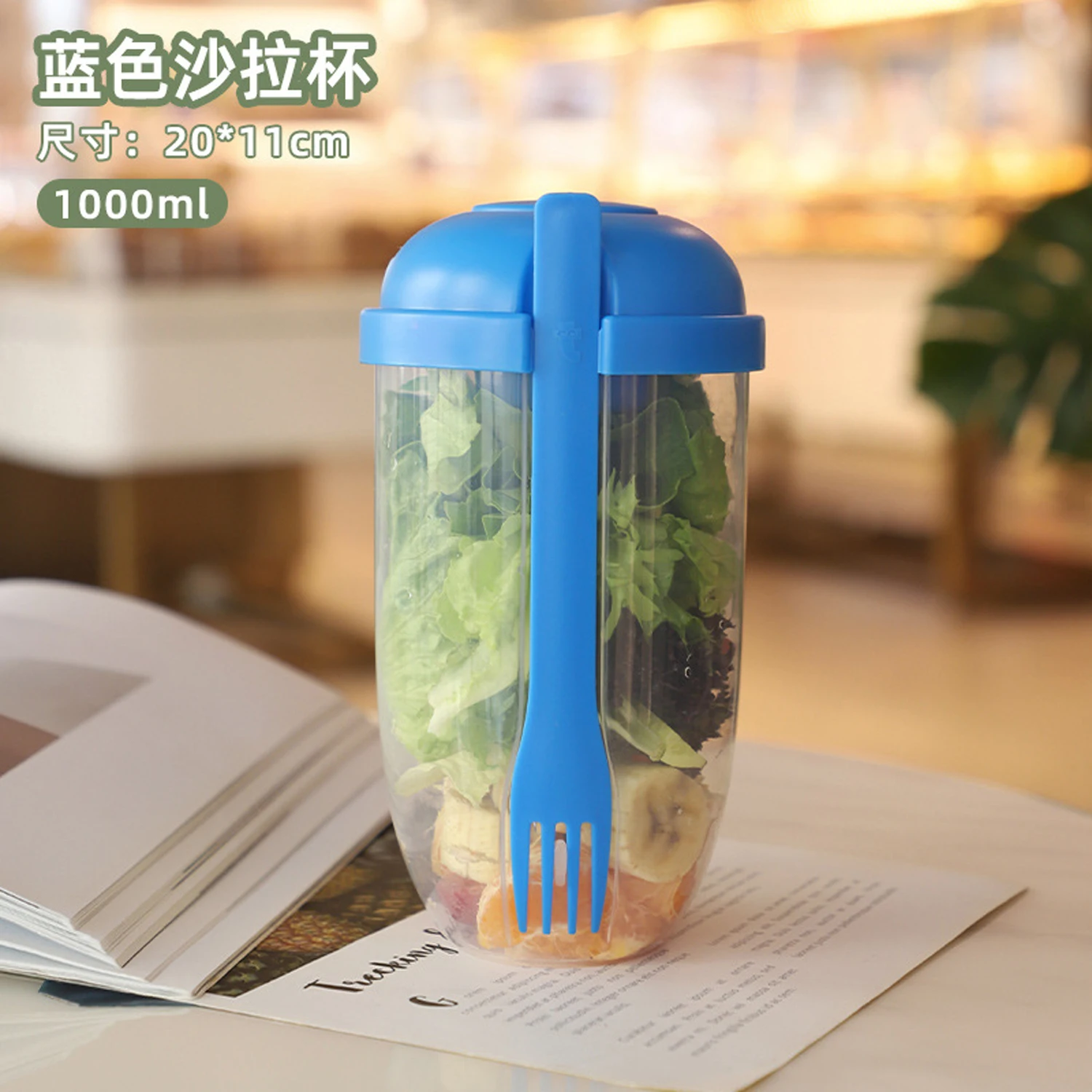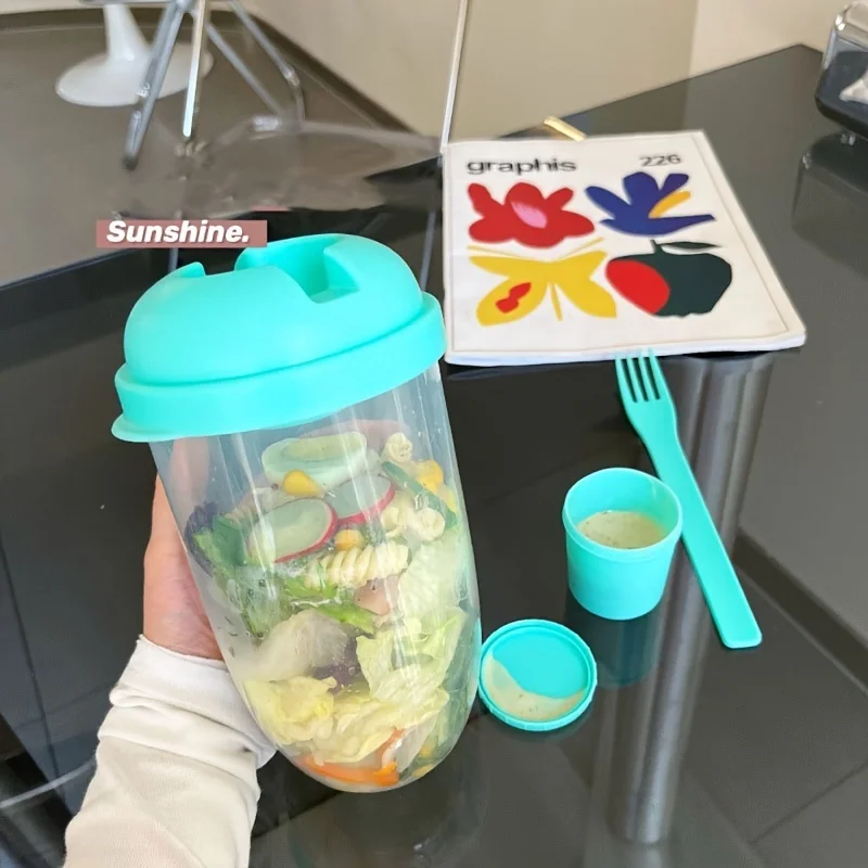 Portable Salad Cup, Breakfast Salad Cup, Sealed Leak Proof Cup with Fork and Sauce Box, Bento Box, Yogurt Storage Bowl, Lunch